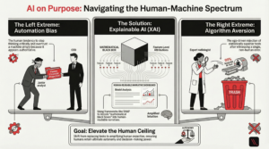 2. Design for Humans First: AI triggers unique psychological constraints. Automation Bias causes rational people to turn off their critical thinking because a machine looks authoritative (the “driving into a lake because the GPS said turn right” effect). Conversely, Algorithm Aversion causes experts to reject a superior tool after witnessing a single error. Design must include “productive friction” to force human verification and transparency to build trust.